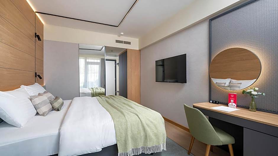 Stylish, park-view room with a balcony. It consists of a flat-screen TV.